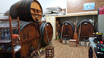 The charming owner seemed a very traditional kind of person and one could imagine the wines were the same as they always had been. We asked him how he kept them fresh in the large barrels and he showed us a huge pill of sulphur which he said were the ancient method of stopping the wine going off. His clients didn't seem to mind as there was a steady stream of people picking up their table wine.